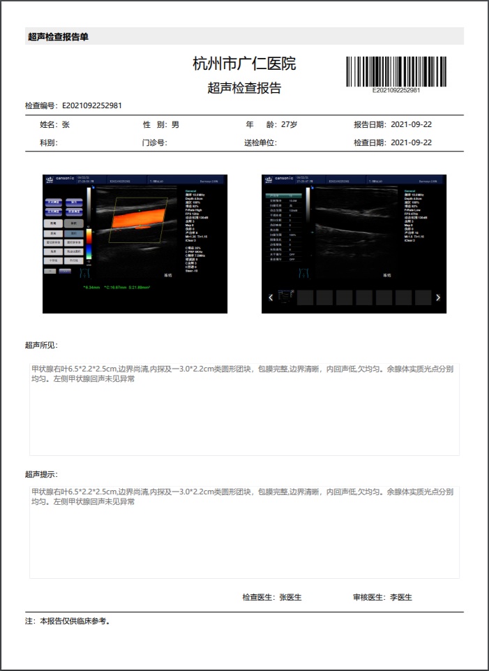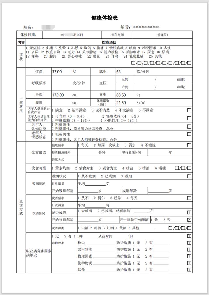 支持智能總檢評價、批量打印健康體檢報告,支持職業(yè)病/學生體檢,支持微信查看電子健康體檢報告